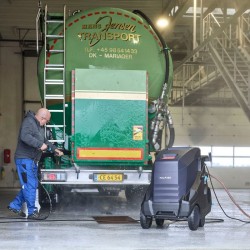 La pression de 220 bars, associée à un débit de 1 050 l/h, fait de ce nettoyeur haute pression à eau chaude la solution idéale pour éliminer la graisse, l'huile et le tartre en milieu industriel. L' utilisation d'eau à 90 °C accroît l'efficacité du détergent et réduit les temps d'intervention lors du nettoyage haute pression industriel.