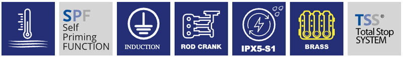 Pompe HRR avec culasse en laiton et 3 pistons en céramique avec système bielle-manivelle, équipée d' un moteur électrique à induction triphasé et d'une soupape de dérivation automatique avec limiteur de pression de refoulement. Cette pompe est équipée d'un système d'arrêt total temporisé et à distance. Prise d'eau auto-amorçante depuis un réservoir.