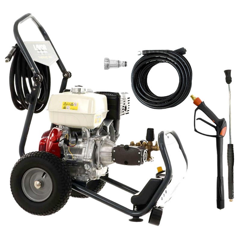 Le Lavor Thermic 13 H est un nettoyeur haute pression professionnel équipé d'un moteur essence Honda GX 390. Cet appareil de qualité, fabriqué en Italie , est conçu pour une utilisation dans des endroits où le raccordement électrique est impossible.