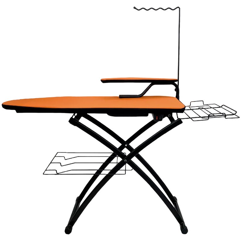Un support de chaudière universel pratique et une prise de service intégrée complètent l'équipement standard, faisant de la table à repasser un allié indispensable pour ceux qui souhaitent obtenir des résultats professionnels même à la maison.