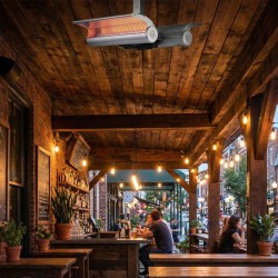 Grâce à sa structure en acier inoxydable, aluminium anodisé et vitrocéramique, le chauffage infrarouge de plafond garantit robustesse et résistance aux intempéries , comme l'atteste son indice de protection IP65 . Son installation au plafond, sa télécommande et son orientation réglable en font le produit idéal pour les environnements intérieurs et extérieurs nécessitant une chaleur instantanée et ciblée.