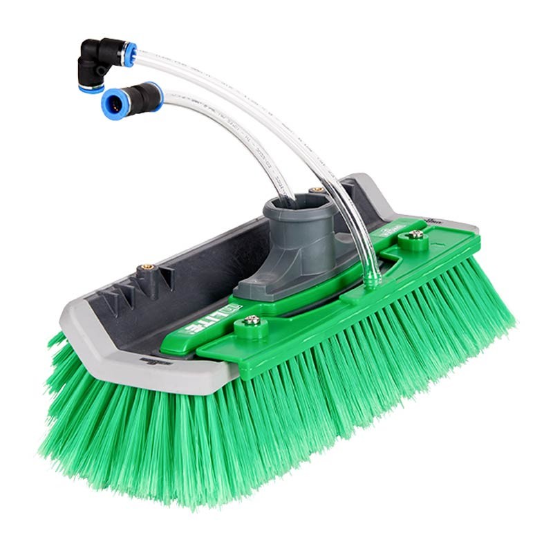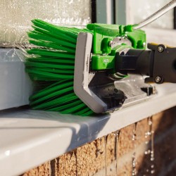 Dans le cas de la brosse Unger nLITE NFR41 , la barre de rinçage peut être utilisée dans deux positions différentes, permettant ainsi une rotation à 180° de la brosse inclinée. Grâce à cette flexibilité , l'Unger nLITE NFR41 nettoie aussi bien les appuis de fenêtre que les coffres de volets roulants.
