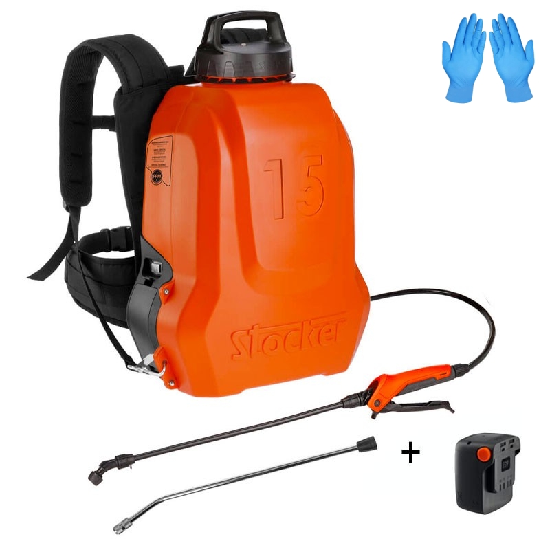 Stocker Ergo 250 est un pulvérisateur à dos électrique de 15 L , conçu pour offrir des performances élevées lors des traitements intensifs dans les oliveraies , les vergers et les grands espaces verts . Grâce à sa compatibilité avec les batteries Power 21 V 2,5 Ah et 4,0 Ah et à son réglage de pression à deux niveaux (3 ou 5 bars) , cette pompe se distingue par sa polyvalence , son autonomie et son confort d'utilisation . Son dossier ergonomique rembourré assure une répartition optimale du poids, tandis que les joints FPM le rendent parfait même pour une utilisation avec des produits chimiques agressifs .