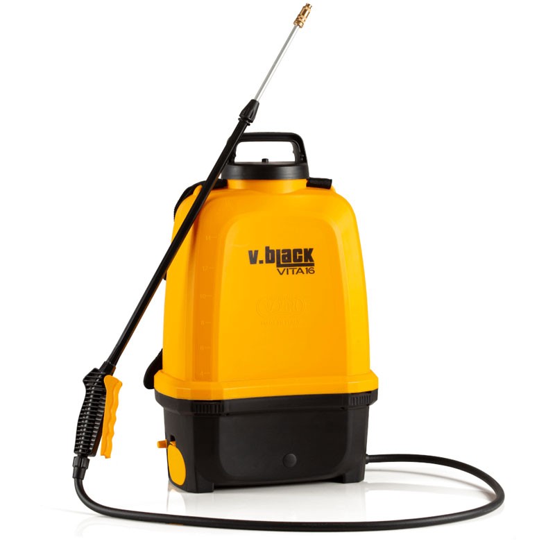 La pompe Volpi V.Black VITA 16 est une pompe à batterie lithium rechargeable V.Battery, équipée d'une carte électronique avec contrôle de tension capable de maintenir une pression constante pendant toute la durée de vie de la batterie.