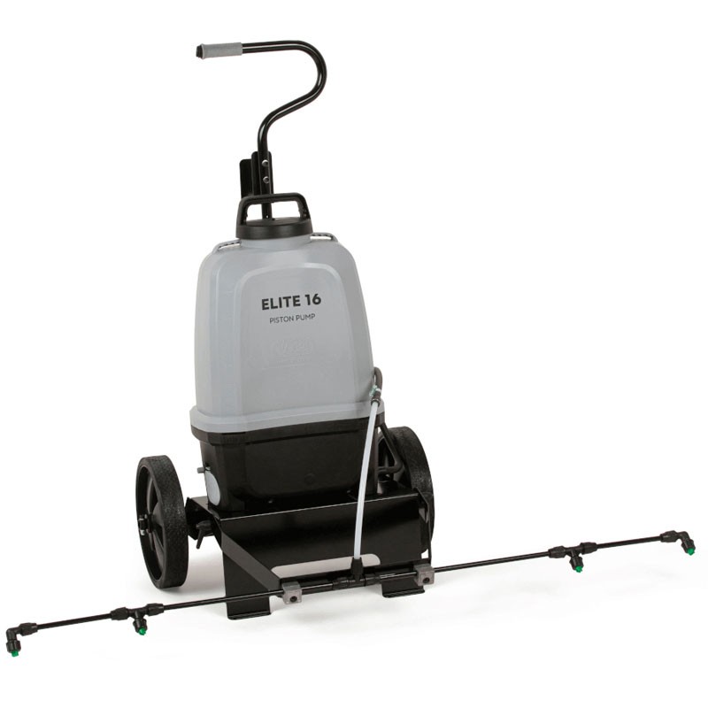 Ce pulvérisateur Volpi est livré avec un chariot pratique pour un transport facile. Ses grandes roues robustes facilitent son transport.