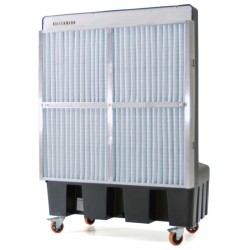 Ce rafraîchisseur d'air par évaporation est équipé d'un système de préfiltration breveté PureFlow , le rendant particulièrement adapté aux environnements très poussiéreux, et d'une lampe UV pour la désinfection contre les virus, les bactéries, les champignons et les moisissures. Garantie de 5 ans .