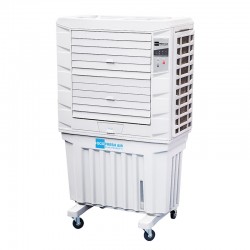 Eco Fresh Air FRE9002 , refroidisseur d'air par évaporation pour environnements intérieurs et extérieurs tels que les industries, les entrepôts, les zones de travail et les espaces extérieurs des restaurants, bars, clubs, etc. Ce refroidisseur ne nécessite aucun type d'installation et se déplace facilement grâce aux roues pratiques situées à la base ; À l'intérieur se trouvent des panneaux en nid d'abeille et un moteur fiable capable de fournir un puissant débit d'air de 9000 m³/heure .
