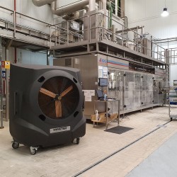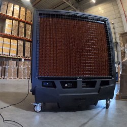 Master BC 341 est un refroidisseur industriel portable idéal pour refroidir de grandes zones de travail ; la machine est en effet idéale pour les environnements avec des surfaces allant jusqu'à environ 400 m² , pouvant fournir un débit d'air élevé de 30000 m³/h .