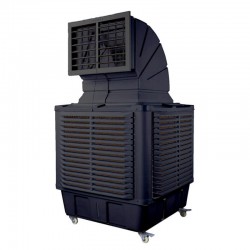 Ce rafraîchisseur d'air possède une structure robuste et compacte en plastique résistant aux UV et est équipé de roulettes pivotantes pratiques pour faciliter son déplacement. Le diffuseur situé sur le dessus dirige l'air vers l'endroit souhaité, et le ventilateur à 12 vitesses assure un climat idéal.