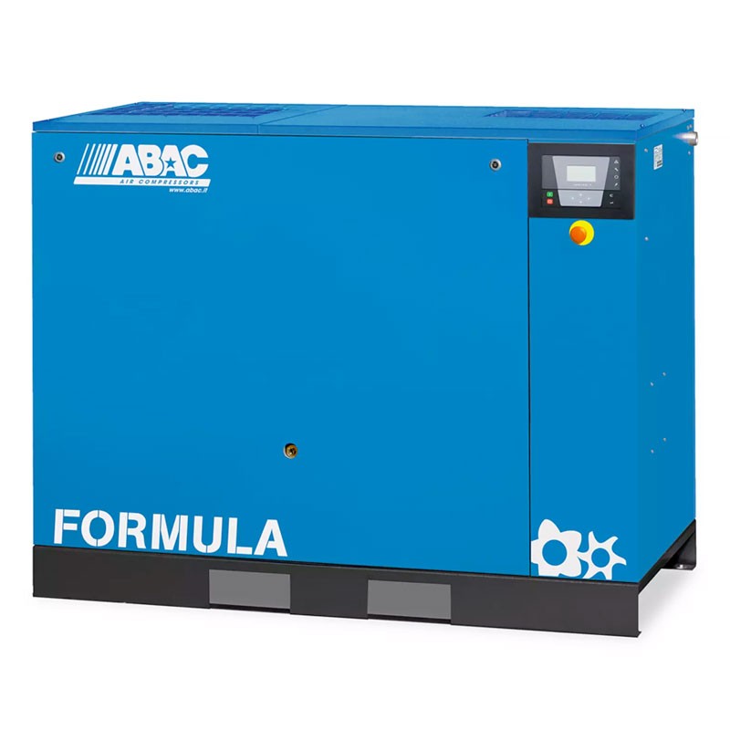 Compresseur à vis robuste , pour usage industriel intensif. Les versions Abac Formula I et Formula IE se distinguent des compresseurs à vitesse fixe par la présence d'un système Inverter , qui permet de faire varier la vitesse du moteur en fonction de la consommation d'air comprimé .