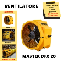 Ventilateur robuste, fiable et durable , le Master DFX 20 est un produit au service des professionnels des secteurs industriel et agricole, mais aussi lors d'événements nécessitant une ventilation externe , utilisable pour l' armée , la location , les maisons et les bureaux .