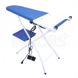 Cette table à repasser professionnelle est équipée de deux moteurs et de deux pédales qui permettent d' activer ses fonctions en cas de besoin.