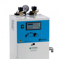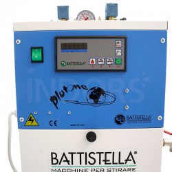 La chaudière Plutone de Battistella a une puissance de 4 kW , tandis que chaque fer à repasser développe 800 W , pour une puissance totale de 5,6 kW . Ceci garantit un chauffage rapide et une production de vapeur continue .