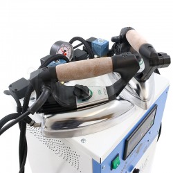 Ce générateur de vapeur a une empreinte au sol de 30 x 43 x 98 cm (L x P x H) et un poids de 22 kg , ce qui le rend compact et facile à placer dans la zone de travail.