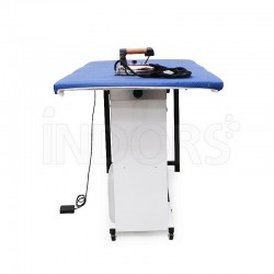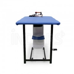 Les dimensions de la table sont de 151x81x90h cm avec une forme rectangulaire. Enfin, ce set de repassage professionnel comprend le support de câble , le tapis repose-fer en caoutchouc et un réservoir d'eau de 10L .