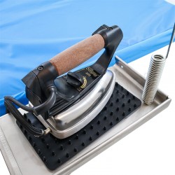 La table à repasser est fournie avec le fer à repasser Battistella 800W EOS d'origine, doté d'une poignée en liège, qui assure une prise en main ergonomique pour alléger même les tâches les plus exigeantes.