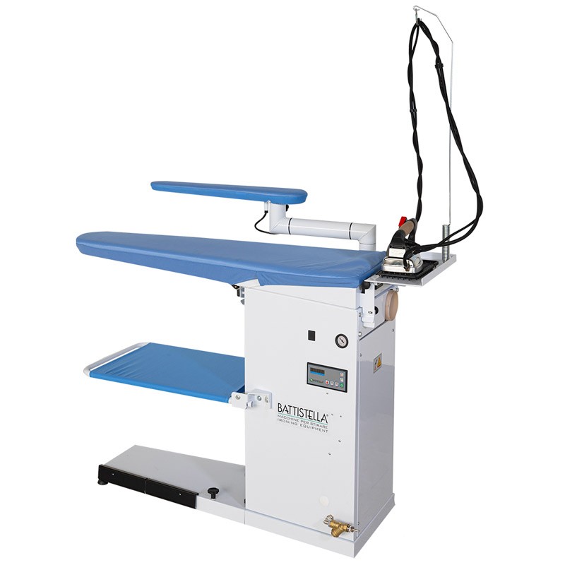 Argo avec fonction d'aspiration est équipé d'un moteur de 0,5 CV pour maintenir la surface de la planche à repasser plane et sans plis, garantissant des tissus sans plis.