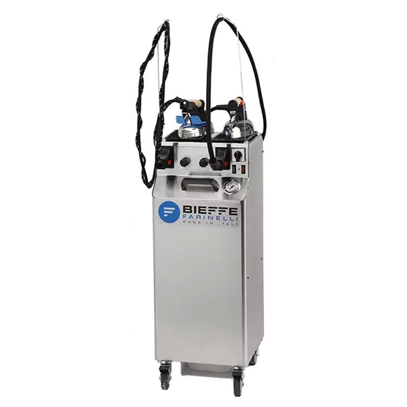 Le fer à vapeur Bieffe Farinelli BF425S02 est une centrale vapeur professionnelle pour le repassage, conçue pour répondre aux besoins des blanchisseries , des tailleurs , des hôtels et des collectivités . Equipé de deux postes de travail avec fers Bieffe de 1,5 kg , il permet un repassage rapide et efficace, intégrant des fonctionnalités avancées telles que le remplissage automatique de l'eau et la régulation de la vapeur.