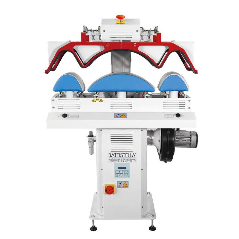 La presse à repasser Battistella Marte pour le cou et les poignets est une machine professionnelle conçue spécifiquement pour le repassage précis et rapide de vêtements tels que les cols et les poignets, éléments fondamentaux pour des vêtements impeccables. Grâce à son fonctionnement pneumatique, il garantit une uniformité de pression et des résultats de haute qualité avec une grande efficacité opérationnelle.