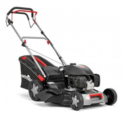 La poignée de la tondeuse à gazon à essence Attila AT 4815 SHQ est conçue de manière ergonomique pour assurer une prise en main confortable pendant l'utilisation ; de plus, elle peut être entièrement repliée pour simplifier le processus de rangement ou de stockage de la tondeuse.