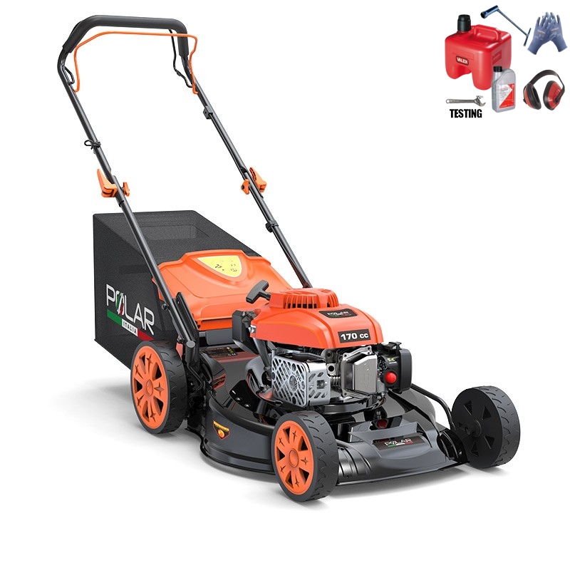 Cette tondeuse à essence Polar a une puissance de 4 CV , avec 3060 tr/min pour 170 cc . Cette tondeuse à gazon Polar a une largeur de coupe de 46 cm, pour 10 hauteurs de coupe de 25 à 75 mm .
