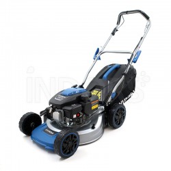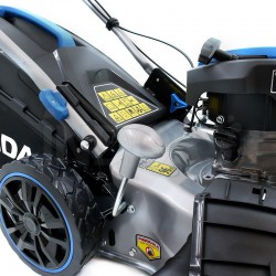 Cette tondeuse à essence Hyundai est équipée d'un moteur de 150 cm3 et 5 CV .