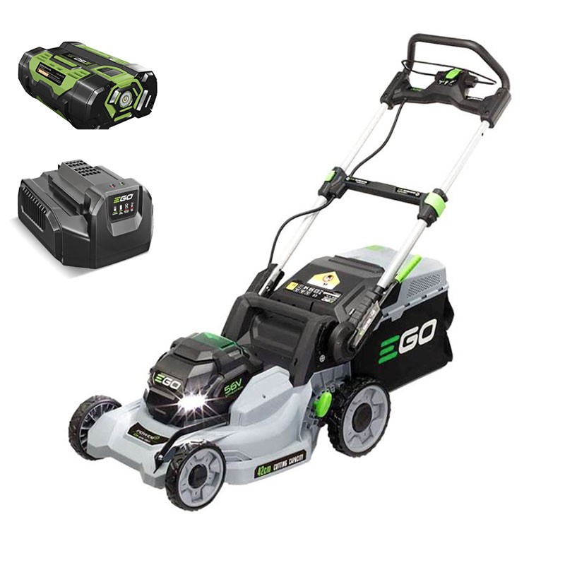 Cette tondeuse à gazon EGO a une largeur de 44 cm avec une capacité de coupe de 42 cm .